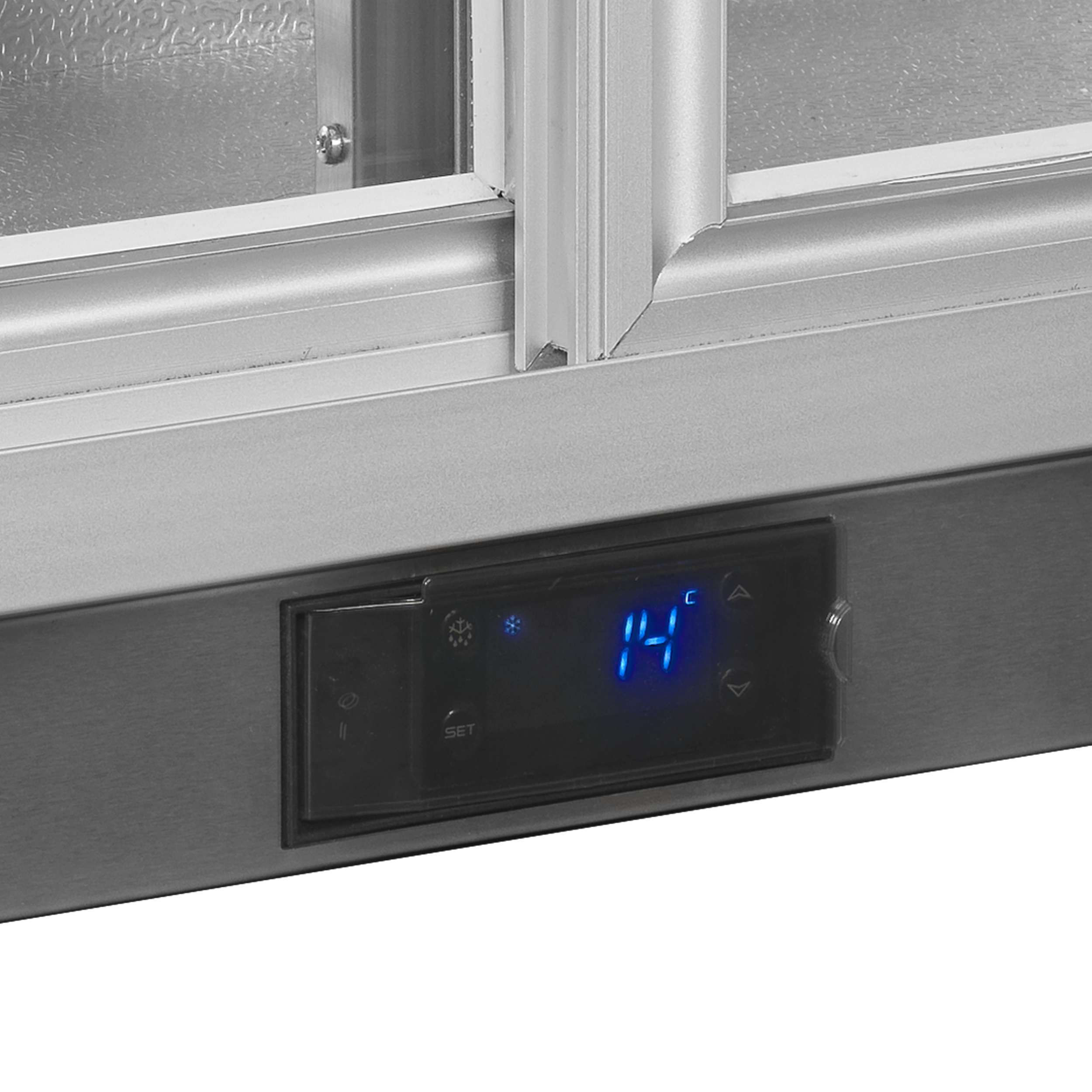 BA er en serie af høj-kvalitets backbarer. Den byder på aluminiumsdøre og tætte trådhylder i krom, der sikrer en god stabilitet samt høj kapacitet. Dørene med dobbeltlags sikkerhedsglas sørger for en god produktsynlighed såvel som et lavere energiforbrug. Fås med 1, 2 eller 3 døre - vælg mellem skydedøre eller hængslede døre. For at sikre at backbaren kan bruges i enhver bar, fås den i to højder: 870 mm og 900 mm. Den nye backbar serie er meget energivenlig og bruger i gennemsnit 59% mindre strøm end de forrige modeller fra samme serie.
