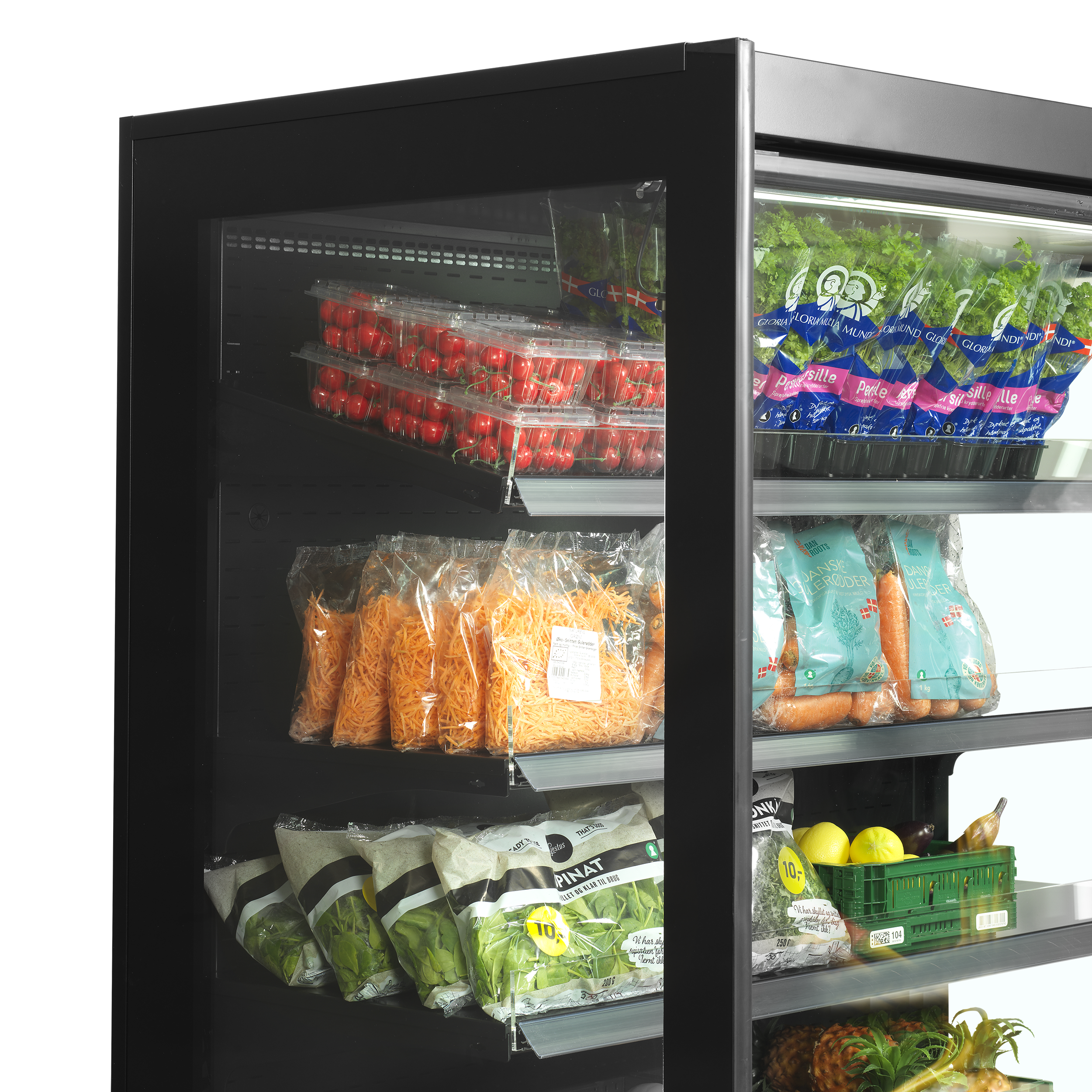 EXTRA er en serie af multideck kølere, der byder på ekstra dybe hylder og er perfekte til dagligvarebutikker og supermarkeder. De fås i flere størrelser og giver god mulighed for en flot produkpræsentation med glasdøre, glas endevægge og justerbare hylder med vippefunktion. EXTRA-modellerne kan multiplexes med et samlesæt og på den måde danne én lang køler i butikkens fulde længde. På trods af kølerens rummelighed, har den et lavt energiforbrug.