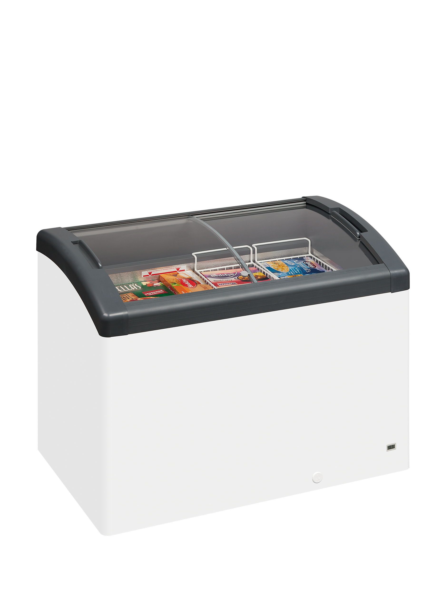 Focus-serien af isfrysere fås i flere størrelser for at passe til dine behov. Den udmærker sig ved sit elegante design, energieffektivitet og holdbarhed. De rammeløse, buede skydelåg og den indvendige LED-belysning giver en fremragende præsentation. Hjul er standard, så den er nem at flytte.