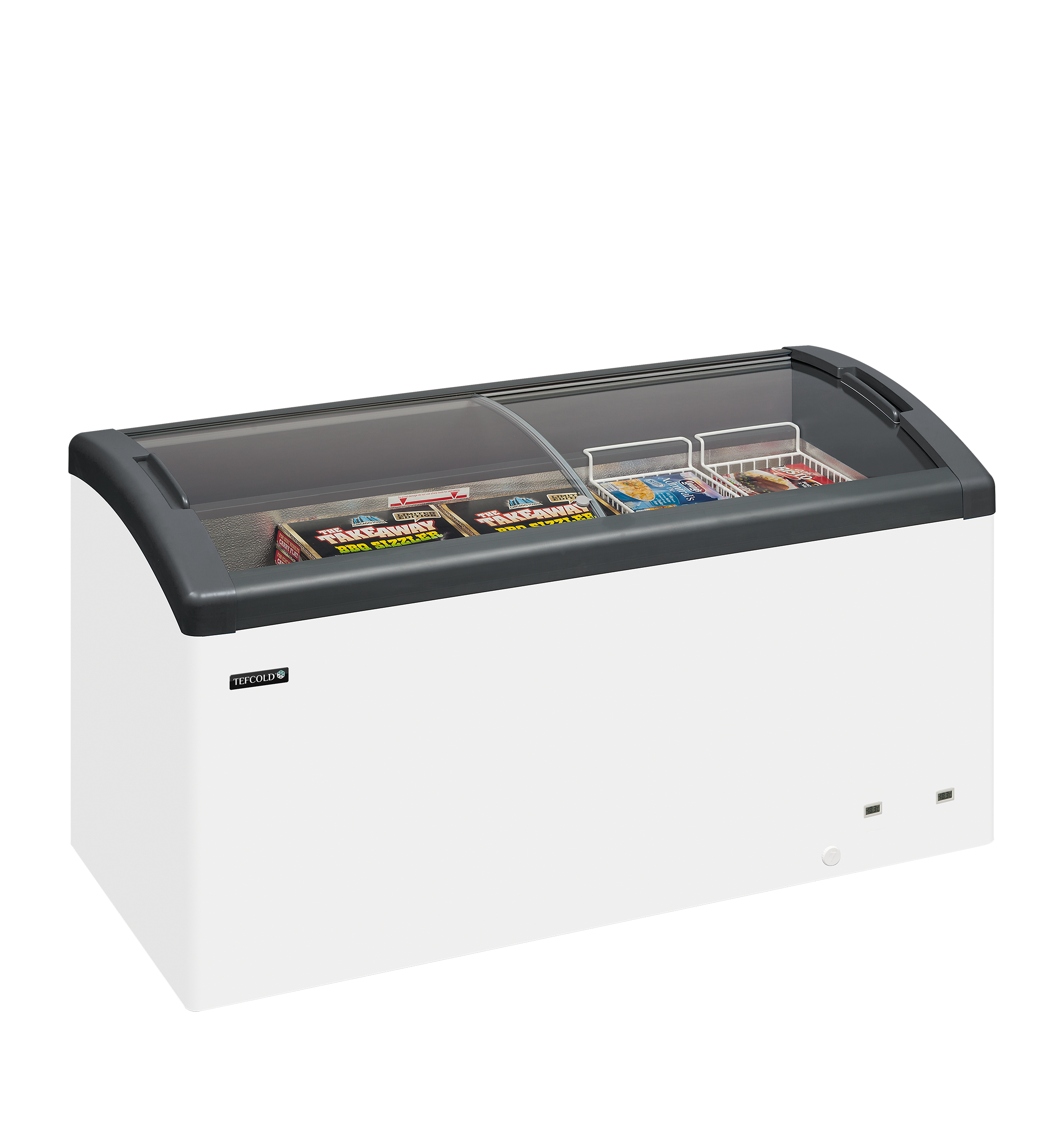 Kummefryser med buede skydelåg i glas. Focus-serien af isfrysere fås i flere størrelser for at passe til dine behov. Den udmærker sig ved sit elegante design, energieffektivitet og holdbarhed. De ramm... ..mere
