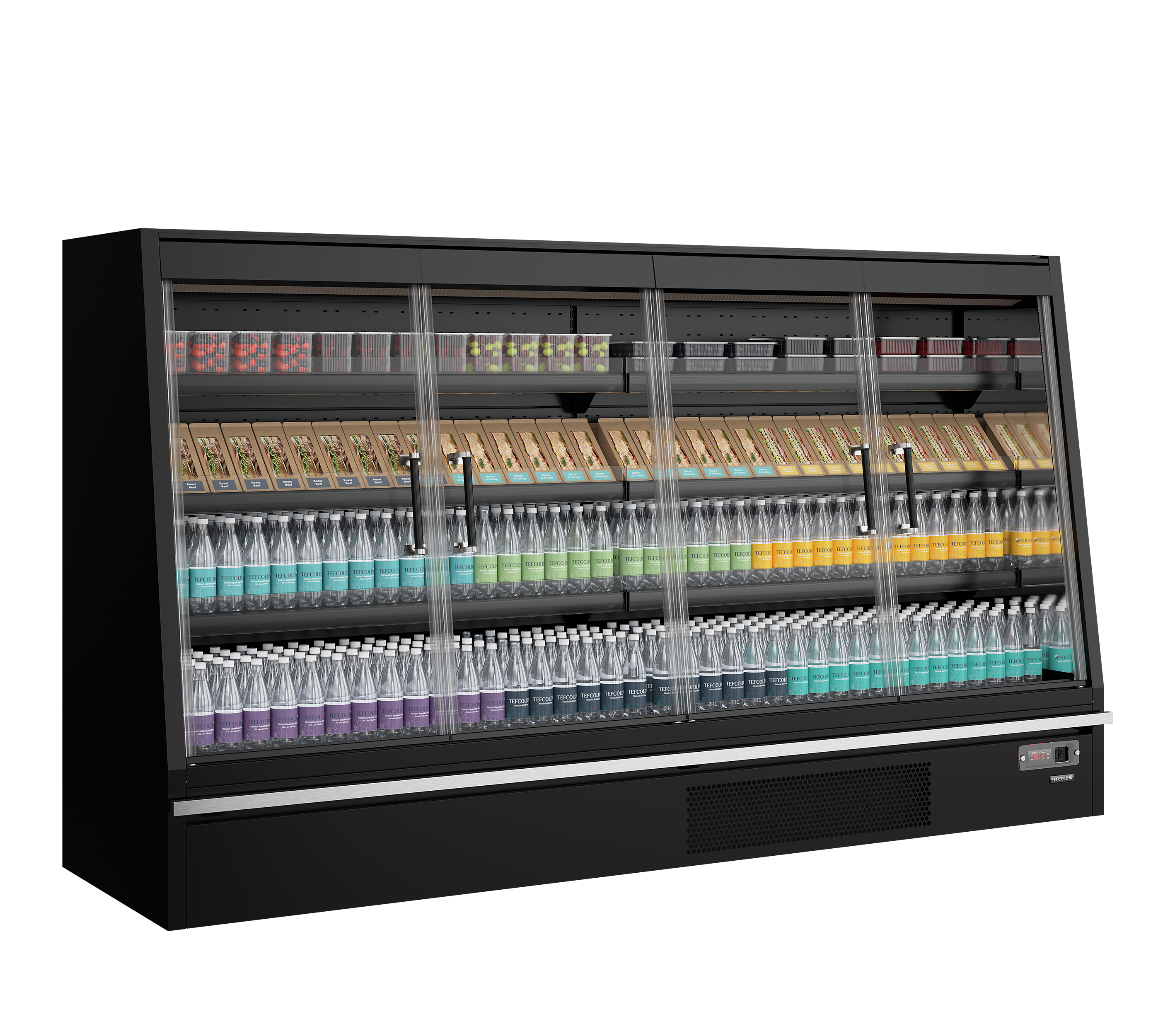 Lav multideck kølereol med døre.