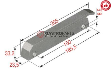 Håndtag til Ovne og Kølediske ERGO 6188 er et robust og funktionelt håndtag designet til professionel brug. Med en centerafstand på 150 mm og en bundlængde på 185,5x23,5x33,2 mm sikrer det en nem og sikker betjening af ovne og kølediske.