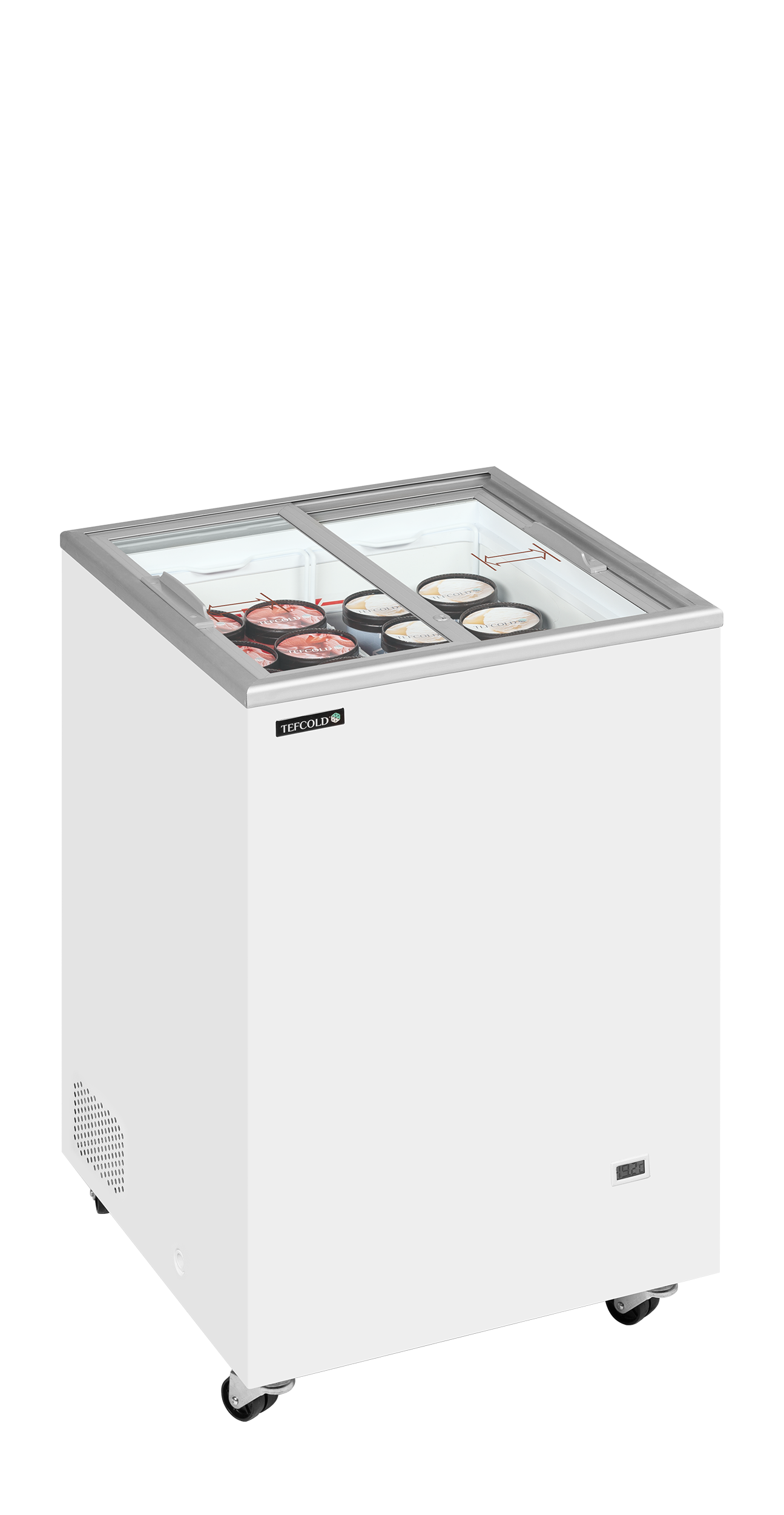 IC-serien byder på pålidelige isfrysere i en god kvalitet til en konkurrencedygtig pris. Serien er et godt valg til iværksættere, sæsonsalg m.m., hvor man gerne vil øge salget af is uden at springe budgettet. Den har flade skydelåg i glas, som giver et godt overblik over indholdet samt et komplet sæt kurve, klar til at blive fyldt med lækker is. Enheden er på hjul og kan derfor let flyttes til en anden placering.
