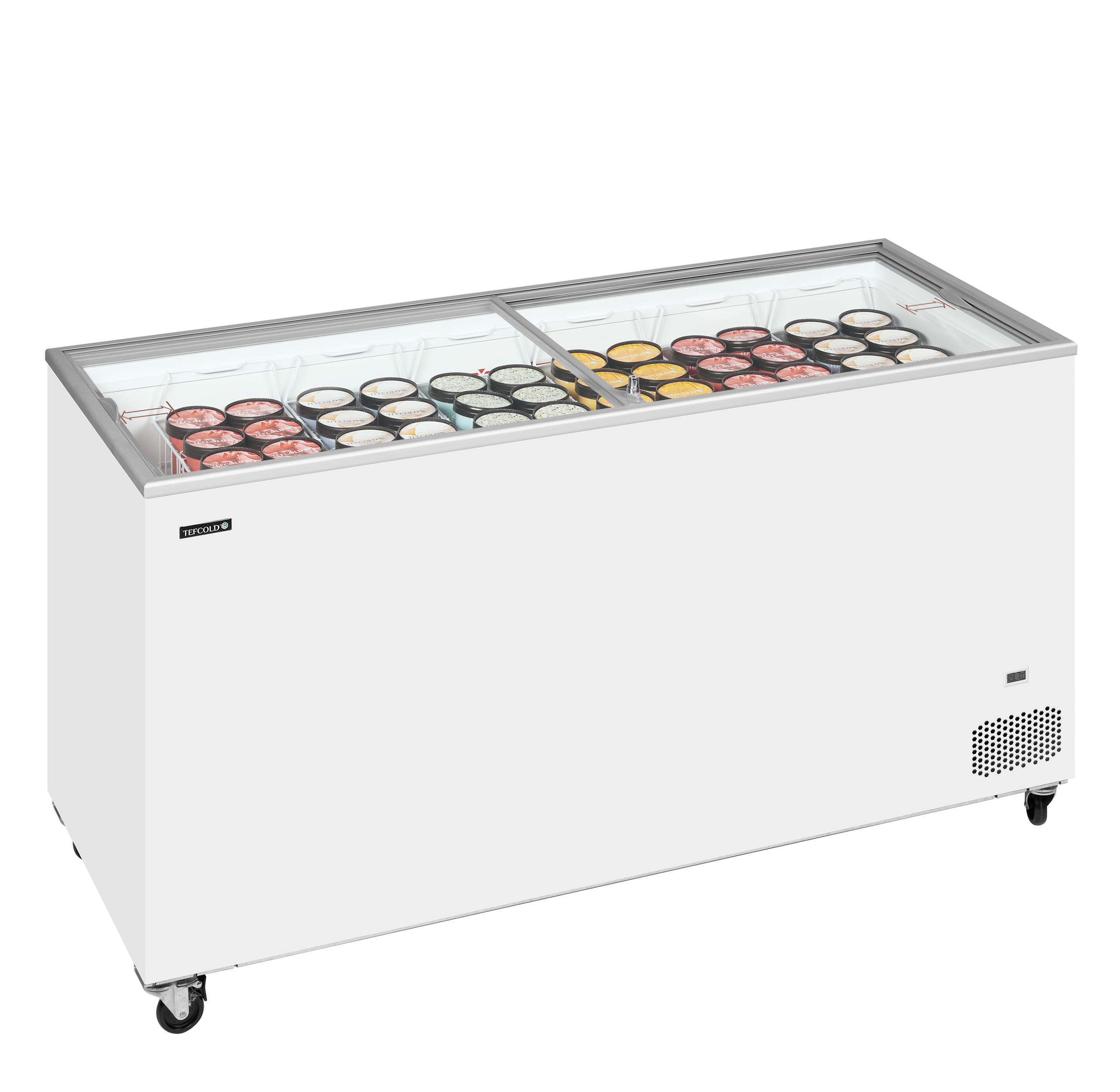 IC-serien byder på pålidelige isfrysere i en god kvalitet til en konkurrencedygtig pris. Serien er et godt valg til iværksættere, sæsonsalg m.m., hvor man gerne vil øge salget af is uden at springe budgettet. Den har flade skydelåg i glas, som giver et godt overblik over indholdet samt et komplet sæt kurve, klar til at blive fyldt med lækker is. Enheden er på hjul og kan derfor let flyttes til en anden placering.