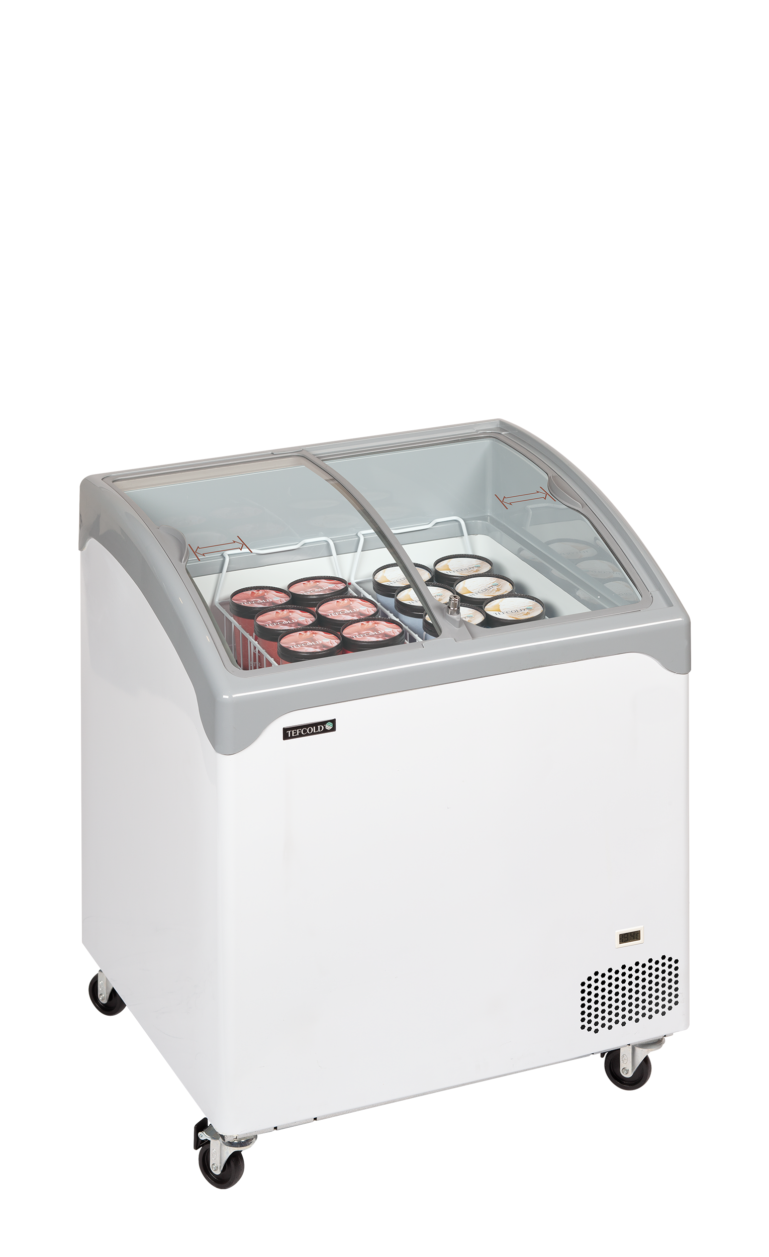 Elegant kummefryser med buet glasskydelåg. NIC-SCEB er en serie af isfrysere i høj kvalitet, designet med rundede hjørner og kanter samt buede skydelåg i glas. Det er en solid og stabil fryser, der le... ..mere