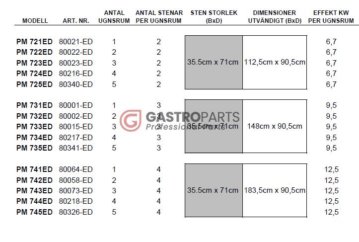PizzaMaster 700-serien er optimeret til pizzaer i størrelsen 25–35 cm og leveres som standard med ben, dobbelt udtrækshylde samt timer til automatisk opstart og sluk.