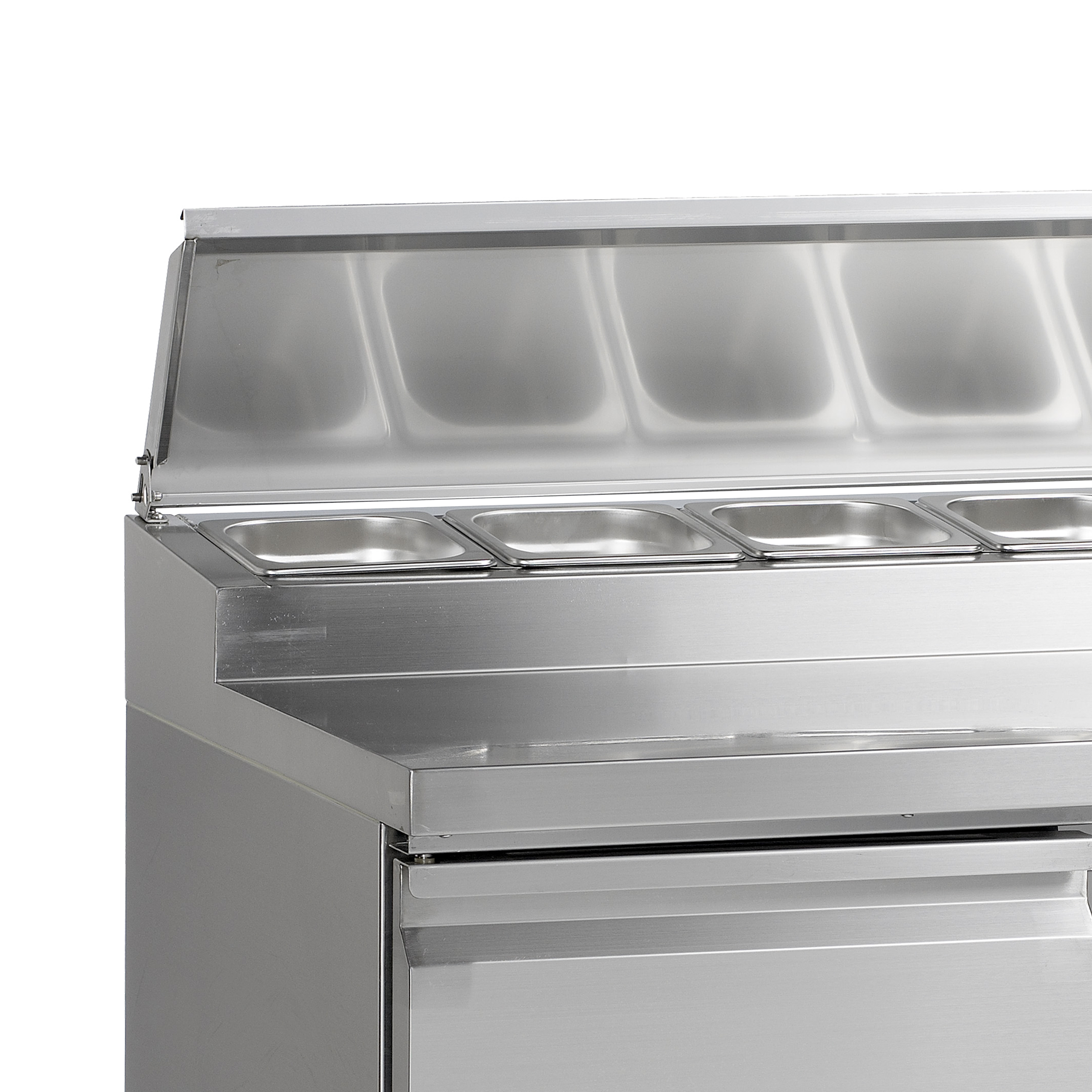 SS er en serie af sandwichborde fremstillet i SS304 rustfrit stål. De er et godt valg til professionelle køkkener, da du har alt, hvad du skal bruge til madlavningen, lige ved hånden. Kølebrønden er velegnet til GN kantiner og skabene giver let adgang til opfyldning. Kølebordene fås i flere størrelser med 2 eller 3 døre.
