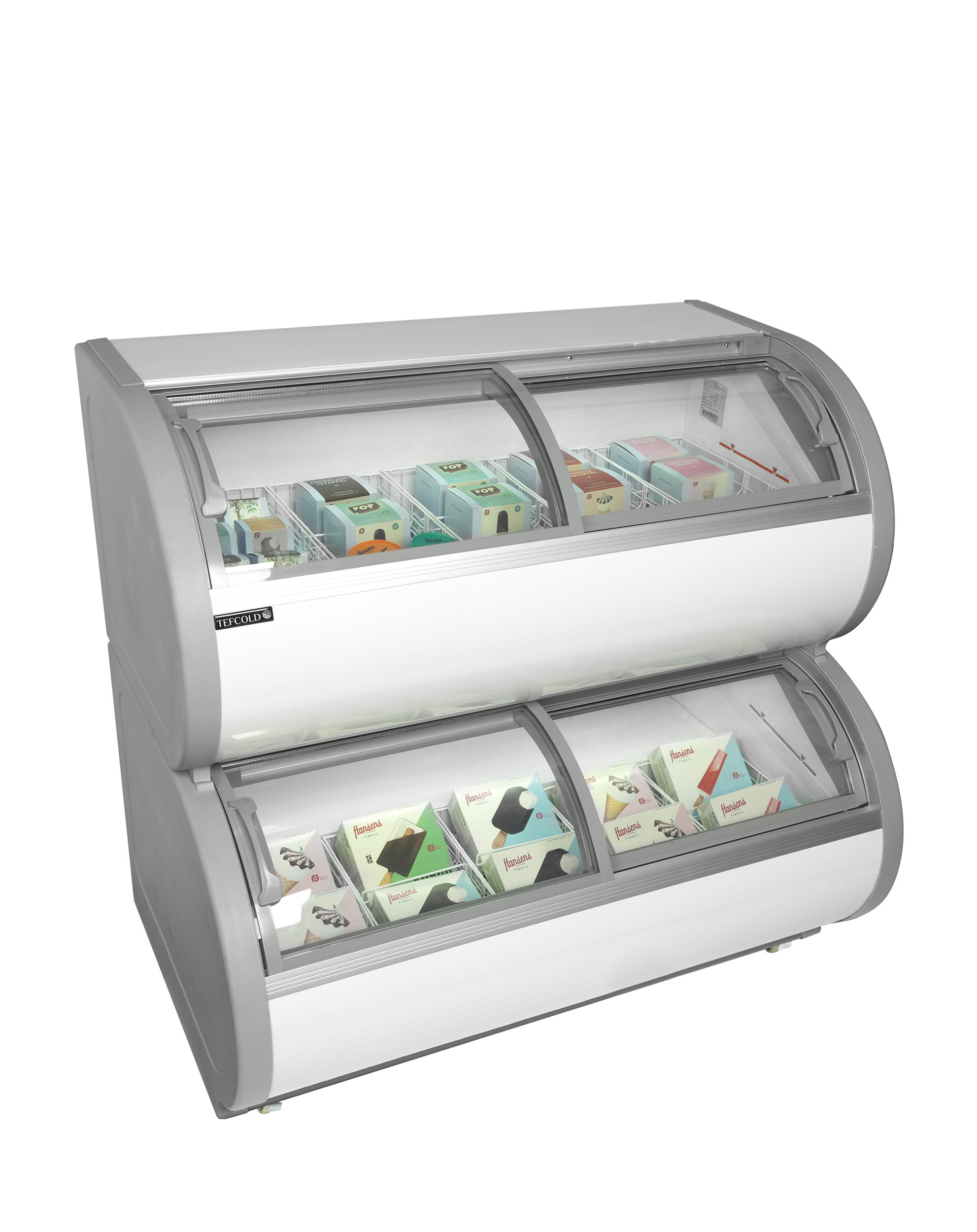 Displayfryser i to niveauer for optimal pladsudnyttelse.