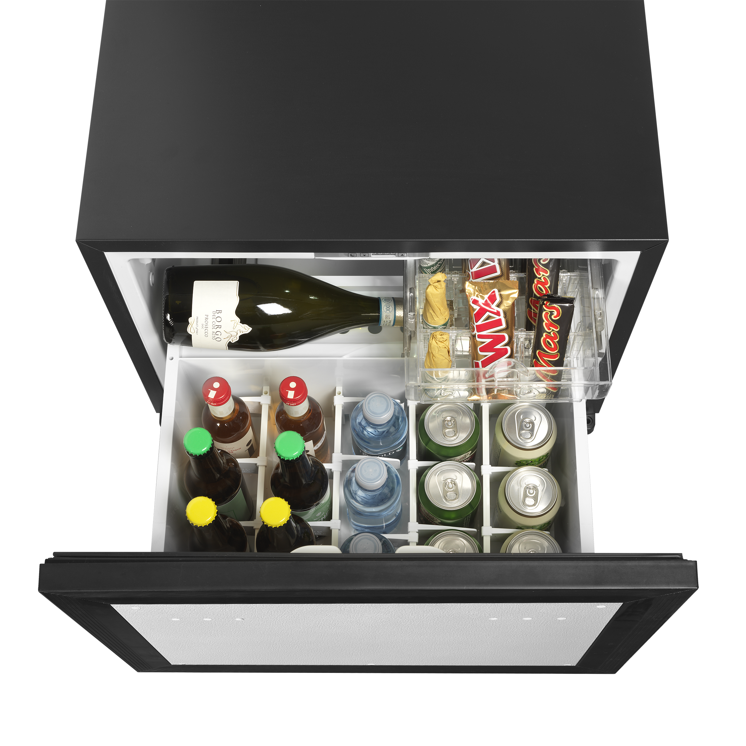TD er en serie af minibarer i skuffemodel, der er perfekt til hotelværelser verden over. Byg den ind i natbordet og giv dine gæster let adgang til kolde drikkevarer og snacks. Skuffemodellen har et lydsvagt kølesystem med kompressor. Derudover byder den på et elegant design og et meget lavt energiforbrug.