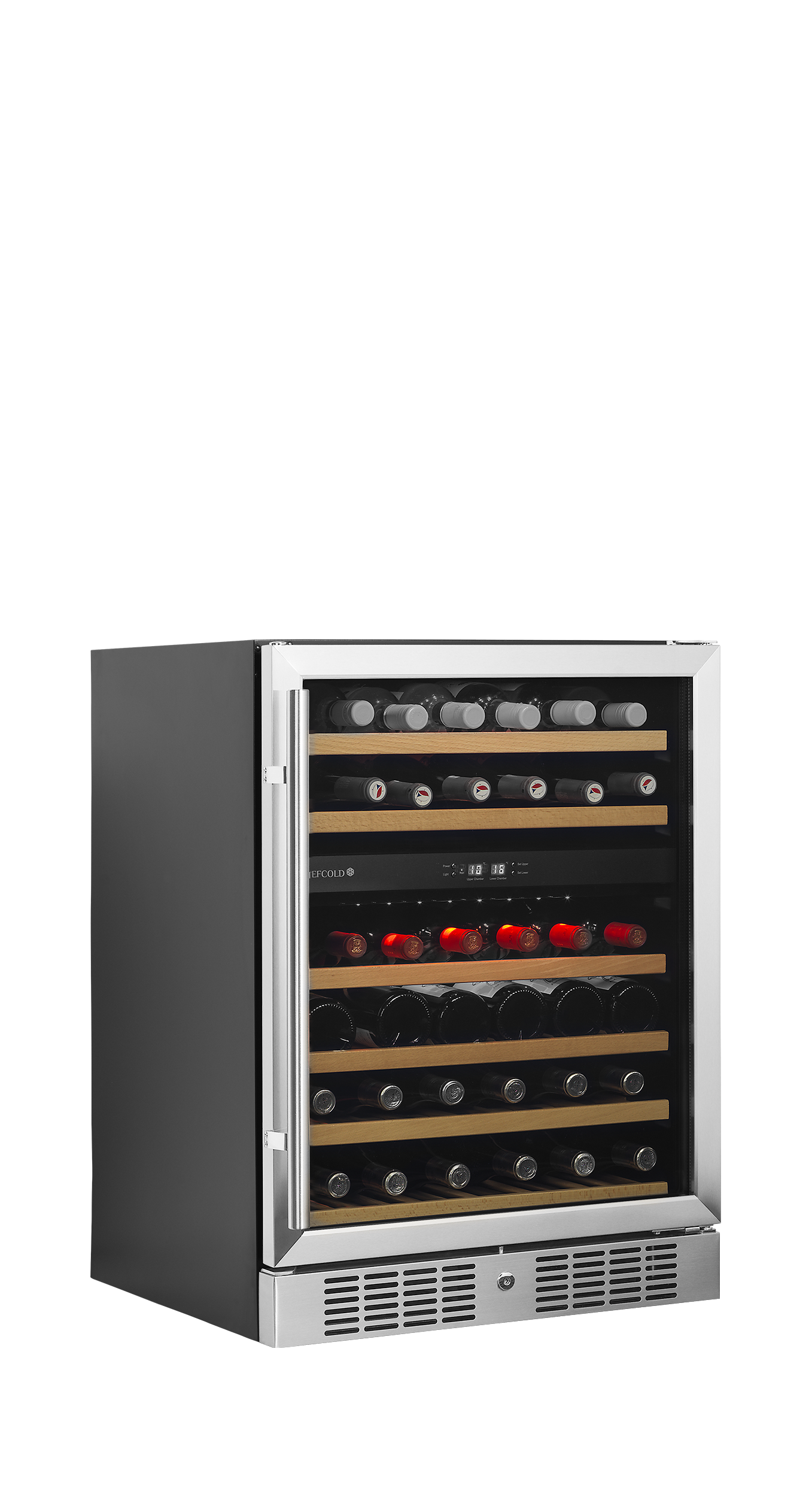 TFW-S er en serie af vinkølere i rustfrit stål, der tilbyder en moderne løsning til fremvisning og opbevaring af vinflasker. Den har et elegant design med en front i rustfrit stål, sort interiør, blød LED belysning og udtrækshylder i træ. Kølesystemet er meget effektivt og hjælper med at reducere både lydniveau, varmeudledning og energiforbrug.