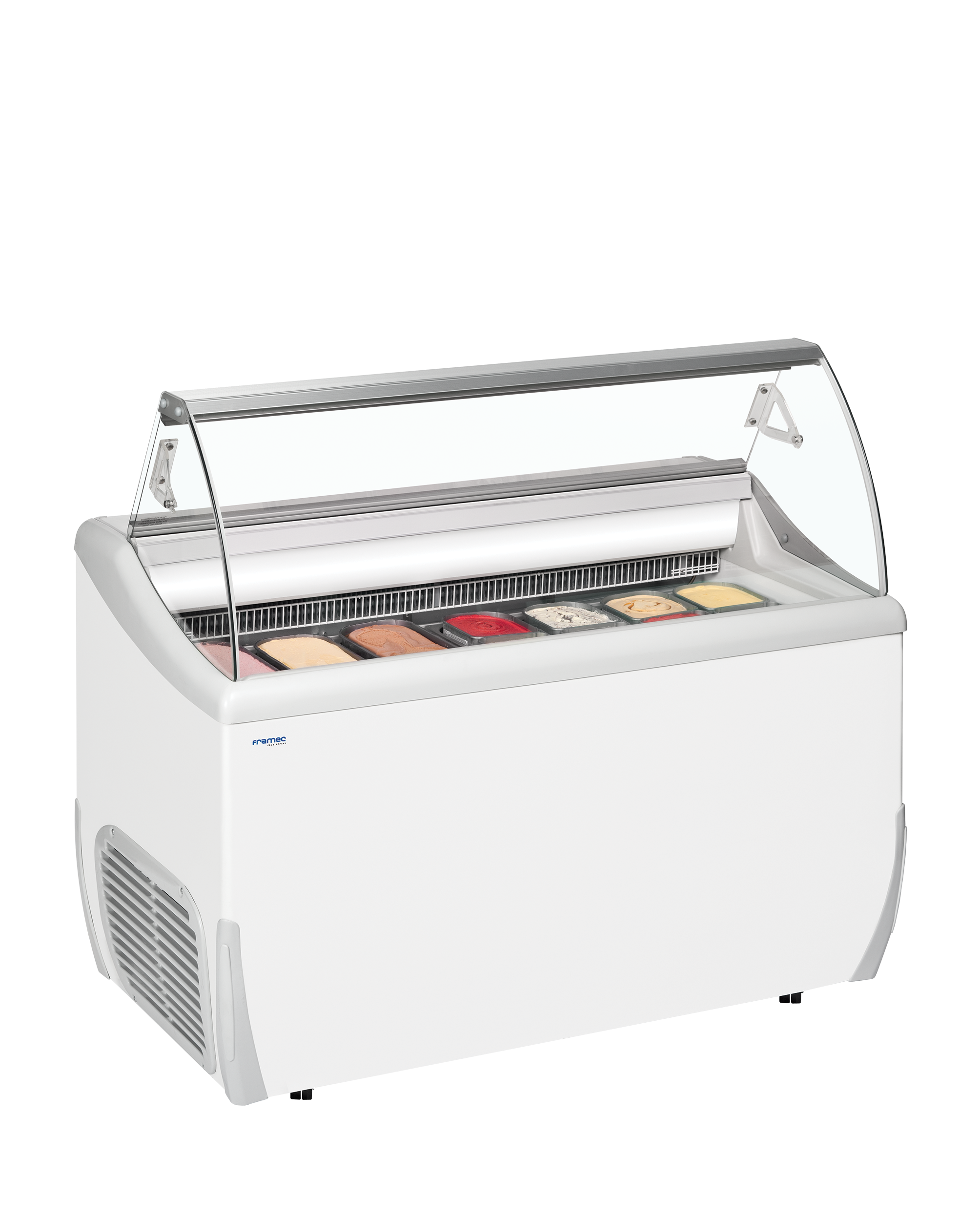 UDRS-serien er en del af TEFCOLDs premium fryserprogram. Den byder på høj kvalitet og et elegant design med en lav front, der giver et godt overblik over indholdet. Isdisken har vippelåg på bagsiden, hvilket hjælper med at isolere og spare på energien, når du ikke er i gang med at servicere kunder over det buede frontglasparti. Fryseren er naturligvis velegnet til napoli iskantiner (ikke inkluderet).