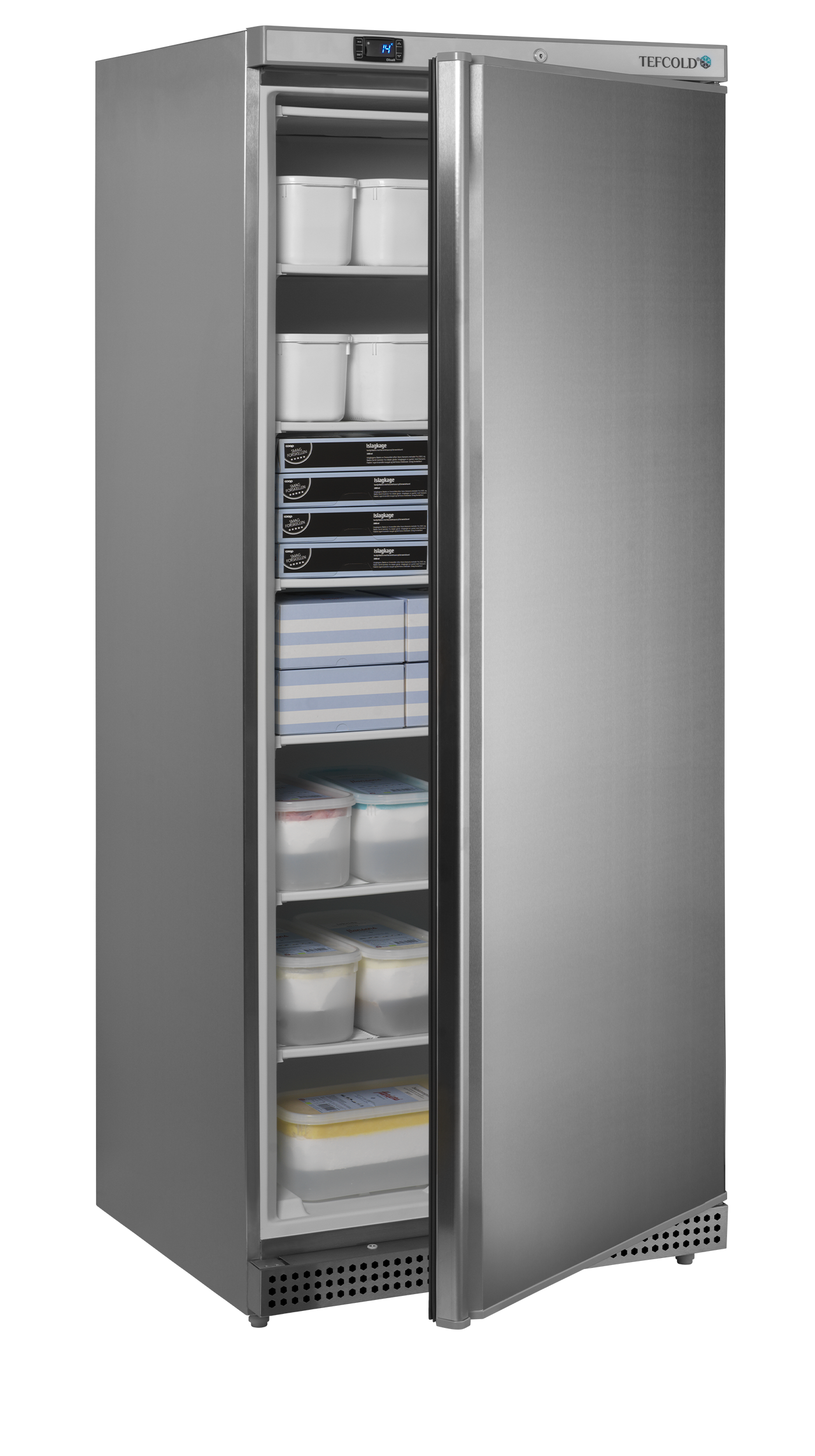 UF-S er en serie af lagerfryseskabe i rustfri stål, der byder på høj kvalitet og pålidelighed til en konkurrencedygtig pris. De fås i flere størrelser og har alle et stilrent design med et integreret håndtag i fuld højde. Standardfryseskabet har faste frysehylder, hvilket hjælper med at sikre en ensartet temperatur i hele kabinettet. Temperaturen kan hurtigt og let indstilles på en digital termostat.