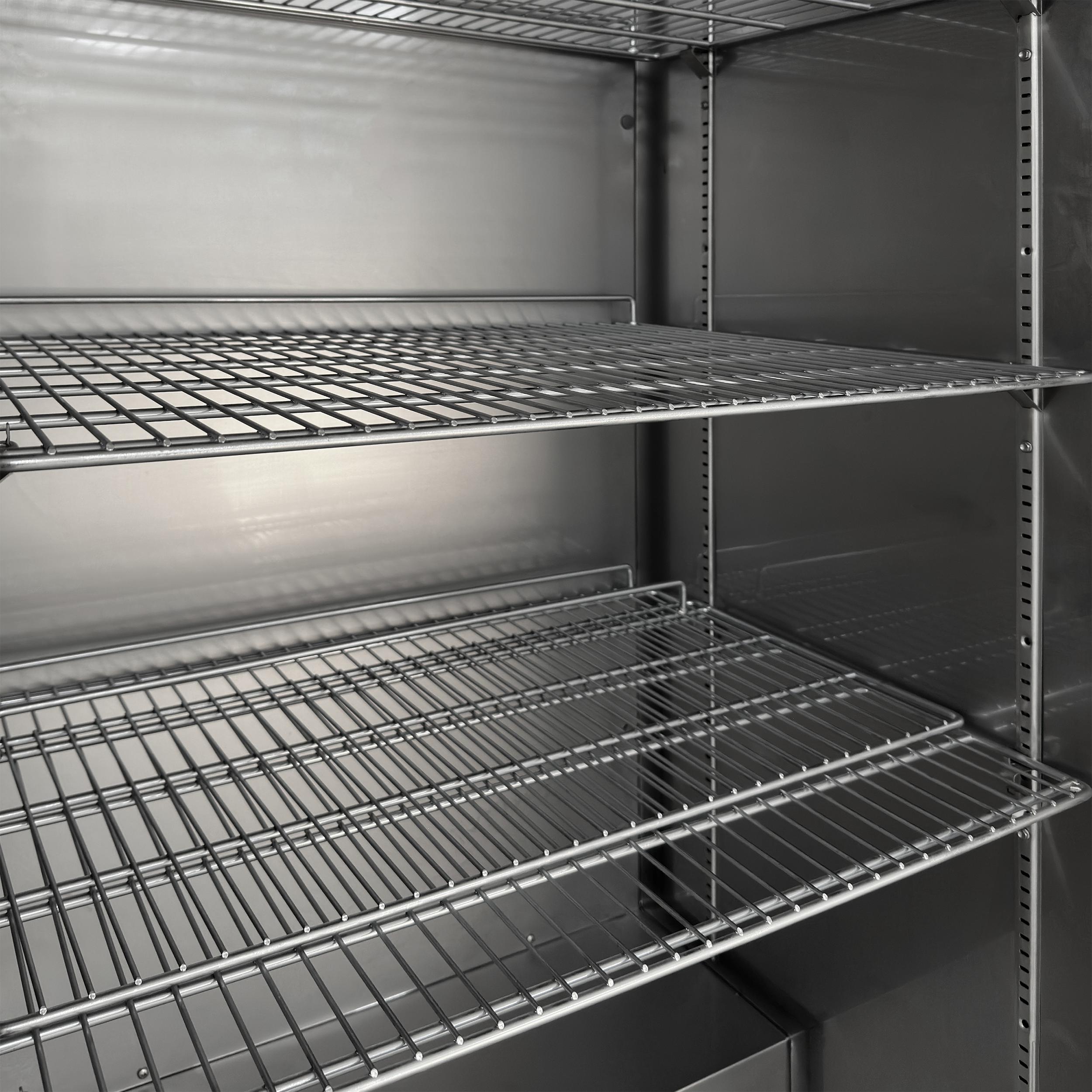 UF-SS er en serie af lagerfryseskabe, der byder på høj kvalitet og pålidelighed til en konkurrencedygtig pris. Den har et moderne design med et holdbart eksteriør og interiør i rustfriut stål samt et integreret håndtag i fuld længde. Skabet har ventileret køl og justerbare GN2/1 hylder. Temperaturen indstilles let på en digital termostat.